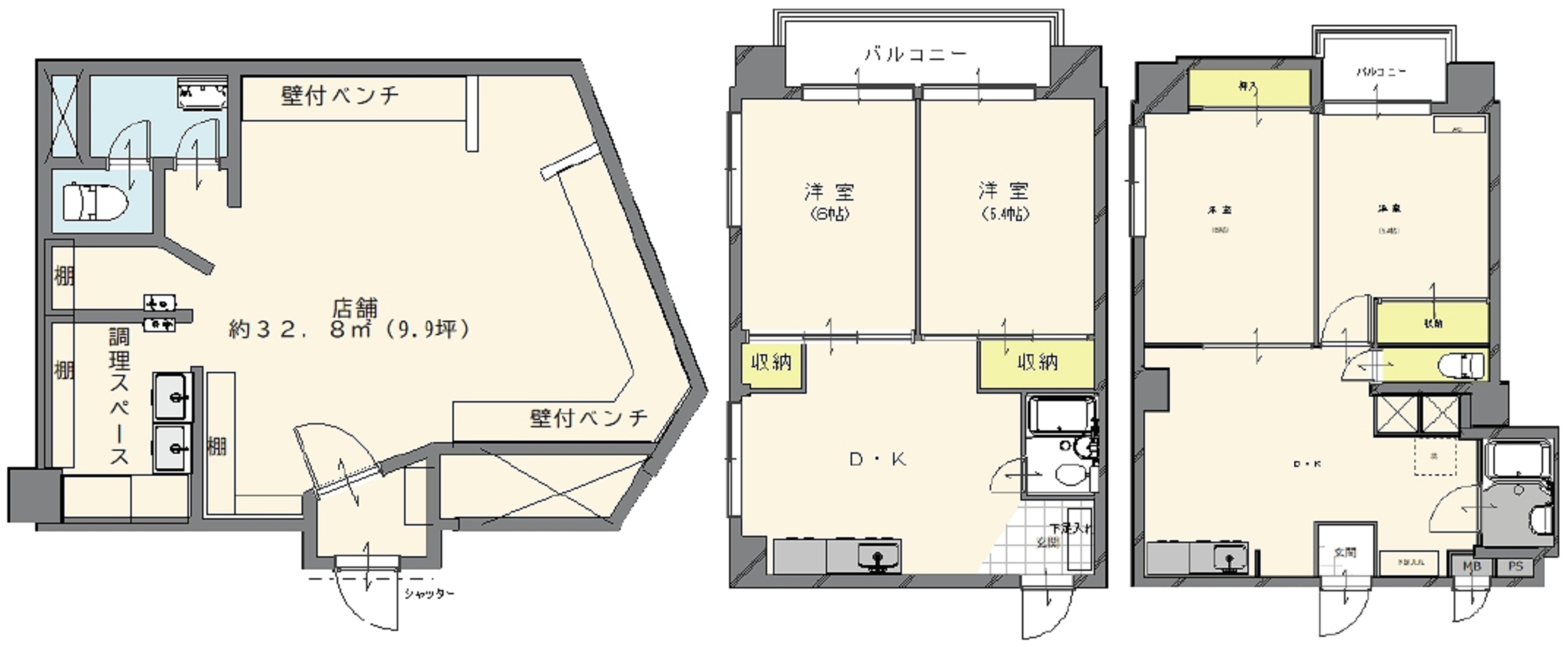 店舗×5、1K、2DK×9 |
